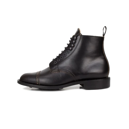 This style of boot was worn around the Globe before WW2 and featured in all the major catalogues of the day. Our new version, the perfect replica of this classic boot, is fitted with a British made rubber sole sewn to a proper Goodyear welt, slim and neat, just like the originals, leather lined and made from high grade Horween leather and, of course, hand crafted in Northampton in the traditional manner as close as possible to the original 20th Century version.