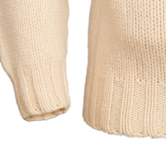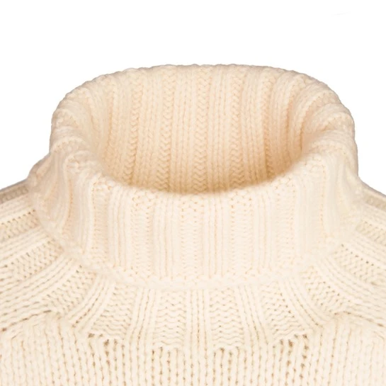 This classic Roll Neck Sweater available in Cream or Navy is knitted in Scotland exclusively for Aero in heavy duty Shetland Wool, especially selected to best replicate the wool used in the sweaters worn by hardy sailors in the harshest of conditions during the conflict. The neck is designed for both comfort and warmth, the roll is knitted not to be restrictive and has extra length to allow to be worn fully raised to protect the face against the elements To further replicate the original we’ve sewn a facsimile of an original War Department label onto the ribbing on the left hand side. The use of external labels was experimented with on various items of issue knitwear for ease of size identification in Quartermaster’s Stores. Like the originals, our label is sewn on with a large stitch making it easy to remove.