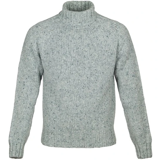For our latest Winter pullover we’ve located the heaviest, thickest, most comfortable wool we could find, a beautifully flecked blend of 30% Cashmere and 70% Merino Wool from Italy and had it knitted in Scotland into a Roll Neck which weighs in at an impressive 1 ½ lbs. Consider the fact that a normal Cashmere Pullover weights around a third of that, the warmth factor of our incredible Cairngorm sweater is immense and yet it feels totally luxurious against the skin.