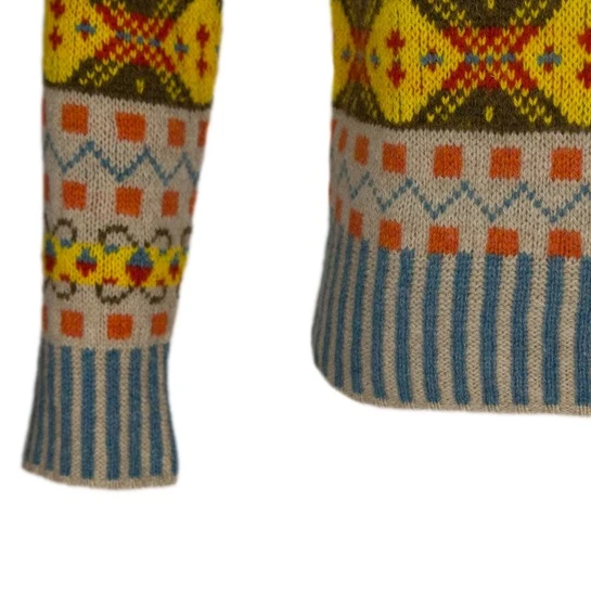 This left us with only one option, to find a commercial knitter capable of reproducing a machine knit Fair Isle using original hand knitting patterns from the mid-20th Century so that the design and the fit were both true to the era. We also wanted a pure wool pullover knitted in Scotland and to make the task even more difficult, we wanted the finished pullover to look “hand knitted”. These beautiful pullovers fulfil every one of our demands.