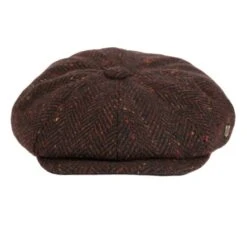Heavy Donegal Tweed Eight Panel Cap: Burgundy Flecked Herringbone
