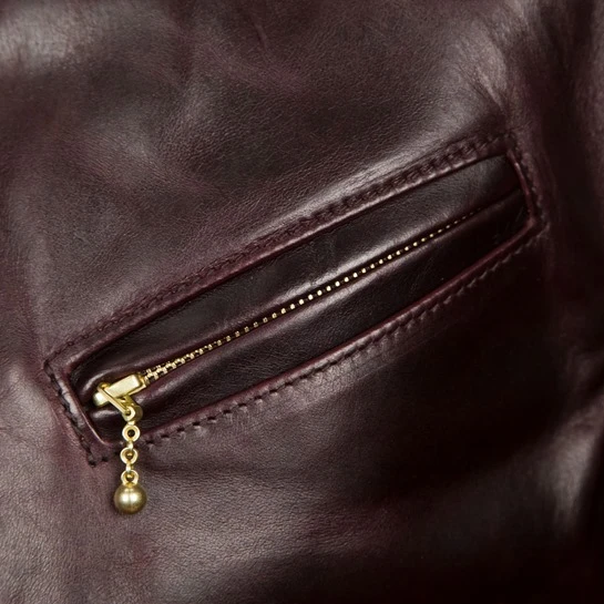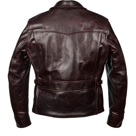 The sleeves have a stud closing/fastening in a blackened brass finish, again a feature of USA 30’s to 50’s design. The back of this jacket has a bi-swing back with a false belt feature (same as the Half Belt) and side adjusting belt and brass buckle, to ensure correct fit.