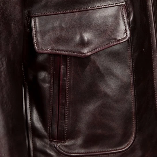 This model benefits from having a five pocket set up: one sloping breast pocket with ring and ball zipper, two large cargo pockets with stud closing, with two hand warmer pockets (inserted) into the cargo pocket feature. We use a classic cord effect detail around the cargo pocket set, typical of 1930’s to 50’s American styling.