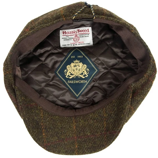 These eight panel tweed caps, while similar in style to the ubiquitous flat cap, are cut with a much fuller and more rounded shape and have a stiff curved peak with a stitch under the overhang to pull the body of the cap tight to the brim. Our cap is fitted with a quilted lining to keep the wearer’s head warm, dry and protected from the elements and is crafted in a choice of shades of Harris Tweed as we continue to support Scotland’s most famous home weavers.