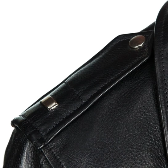 The angle of the front zip is smaller than on our other Aero bike jackets which makes the lapel smaller. Its amazing how often original bike jackets from this period mixed the zippers, utilizing the most ideal zip for each job. We have done the same.
