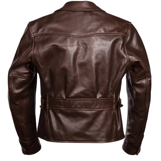 Our jacket is based on our 1930s half belt pattern, giving it the correct slim, neat fit of that era. The jacket closes using hand sewn Corozo buttons, has button fastening cuffs and has a classic half belt back which was still a fairly new design in 1930.