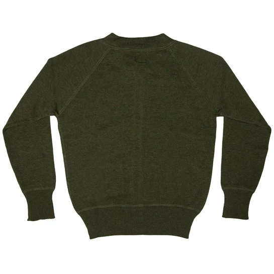 The C-2 Sweater was the first attempt of the USAAF at the beginning of the 1940s to introduce an additional layer for the A-2 Fighter Pilot jacket. It was meant as the insulating layer underneath. Therefore the overall construction of the sweater is a tight fit with raglan sleeves.
