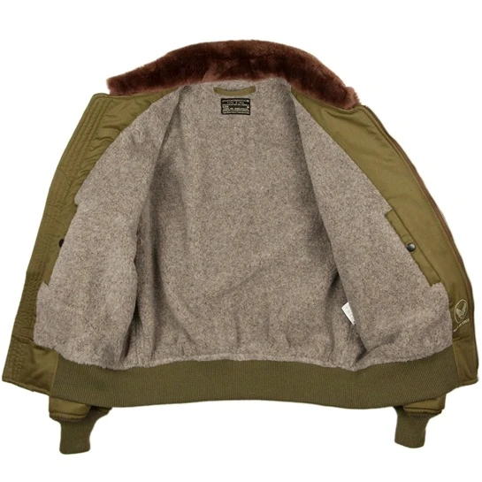 The U.S. Army Air Force B-15 intermediate flight jacket was initially introduced as a replacement for the earlier flight jackets like the A-2s or the B-3s. Highly favored due to its sharp appearance and higher comfort it was not only worn by fighter aces of the U.S. Army Air Forces, but also by other branches of the U.S. Forces as well. Later models were out of nylon but the first version was made with a cotton outer shell, making it the last cotton cloth flight jacket. Like the original, Pike Brothers’ jacket features the loops and leather triangles for attaching an oxygen mask and radio.