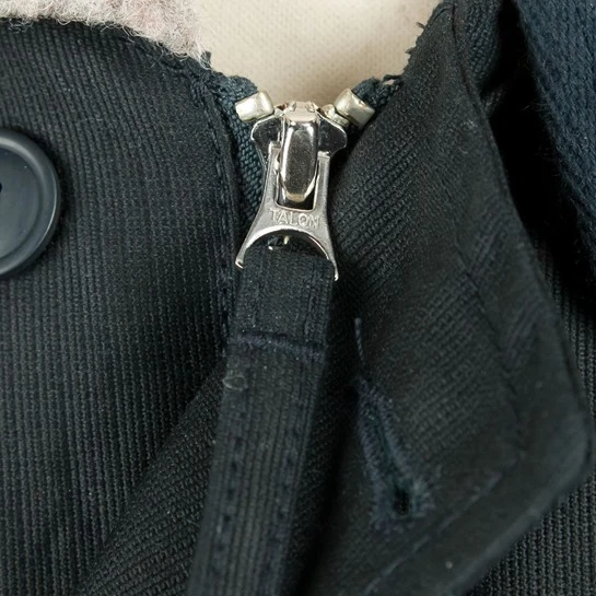 The double faced densely woven Whipcord outer layer is identical to the original as is the heavy duty woven wool lining. The jacket is fitted with a proper vintage 1940s bell shaped Talon Zipper, an authentic Specification label and heavy-duty storm cuffs making it wind and water resistant so the wearer stayed warm and comfortable even under the harshest conditions.
