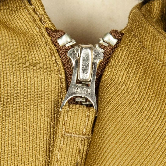 The double faced densely woven Whipcord outer layer is identical to the original as is the heavy duty woven wool lining. The jacket is fitted with a proper vintage 1940s bell shaped Talon Zipper, an authentic Specification label and heavy duty storm cuffs making it wind and water resistant so the wearer stayed warm and comfortable even under the harshest conditions.