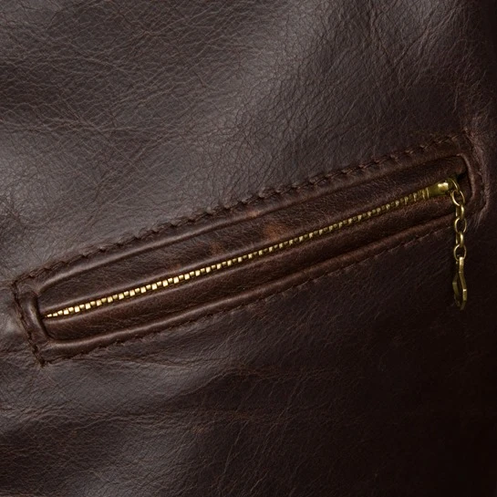 This, the most recent addition to our Premier range, is basically a replica of the jacket worn by Toby Maguire in his role as Red Pollard in the film Sea Biscuit. Ever since the film was released legend had it that Aero had made the film jacket – we didn’t, we denied it but still the story rolls on. We believe it’s an original early 1930s jacket, there is a styling clue that suggests it might be a Levi Jacket but we don’t want to kick start the debate.