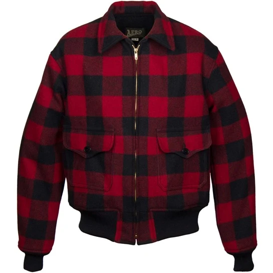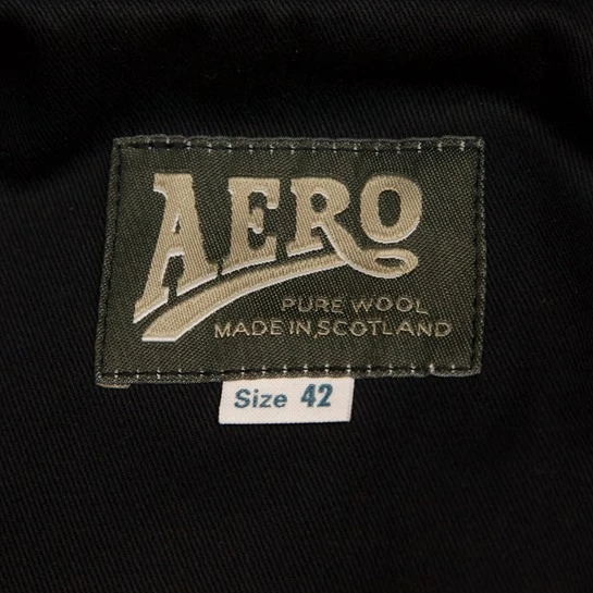 The jacket is hand-made in Scotland in our Galashiels factory and it’s fitted with 100% wool knit in black, a heavy black cotton drill lining as standard and a period style zipper. It has been drawn to our attention that the checks on our version match perfectly, while the jacket used in the film was very badly matched. Sorry, but we just can’t bring ourselves to send out a mismatched version, it’s just not Aero!!!!