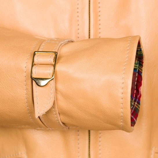 The “Sunburst” back itself is probably a throwback from the 1920s but, as The Depression bit harder, clothing manufacture and design reflected the need to conserve raw materials and leather jackets began to use more small panels and a slimmer cut. What started out as economy gave us some of the most interesting and stylish jackets of the 20th Century. We’ve added this dramatic back to a classic 1930’s sloping front, but used a less angled handwarmer pocket design than those fitted to most Aero jackets, along with a straight zippered breast pocket. We’ve not used this cuff design for a very long time but, as it’s typical of the cuff used on many 1930’s jackets, we felt it was due to be revived.