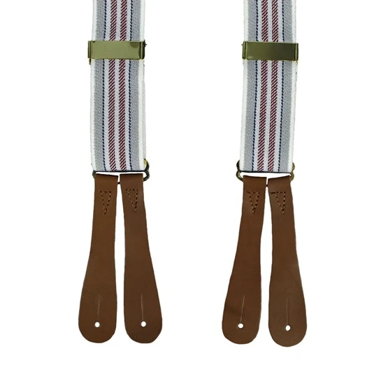 Our superb traditional braces can resolve all issues concerning the appearance of a gentleman’s trousers in one fell swoop. This essential piece of equipment is even more important when wearing vintage or vintage style trousers such as our Harris Tweed or CC41 Corduroys, vintage trousers should be worn slightly looser on the waist than modern trousers and only braces can keep the turn-ups sitting correctly over the wearer’s boots or shoes.