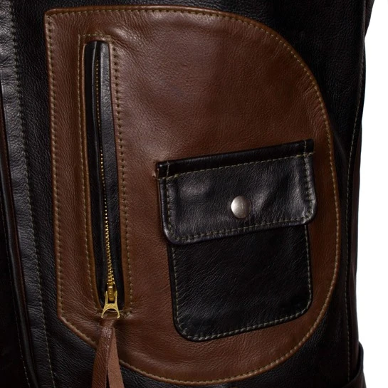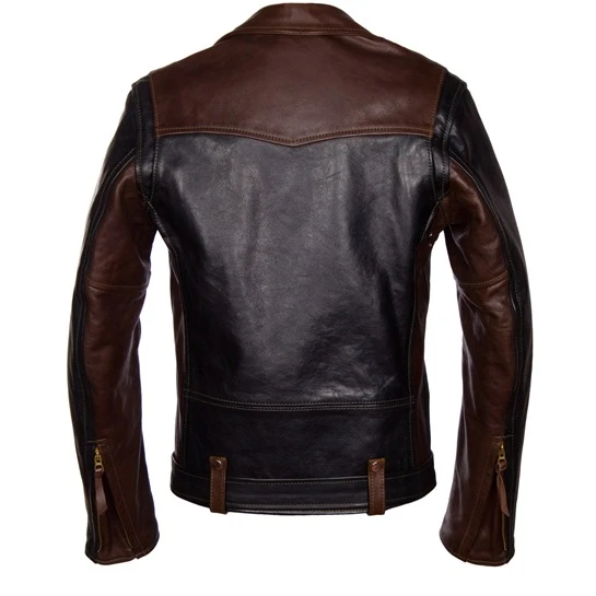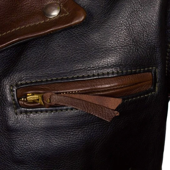 Our Type J-106 is a replica one of the most legendary designs of the era. First introduced by the Joseph Buegeleisen Company (Buco) in the 1950s, the Type J-106 quickly became one of the most ubiquitous motorcycle jacket designs. This heavy Horsehide Jacket features a handwarmer pocket and a small stud-down ticket pocket contained with ‘D-pocket’ styling, studded epaulettes and a full ‘action back’ for extra movement when riding. The sleeves have adjustable zip cuffs and the jacket is fastened by a cross zip. Waist adjustment is by an attached belt.