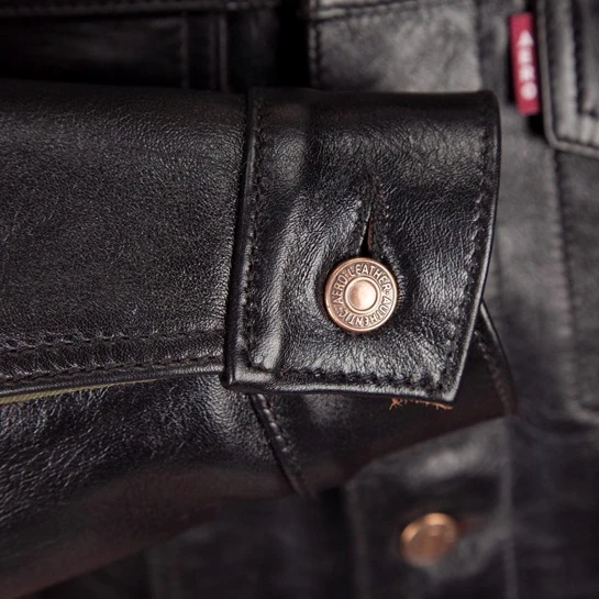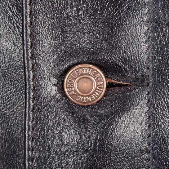 Closed with Aero Press Studs, or with the option of Button Closure, this jacket is available in a number of our mid-weight leathers.