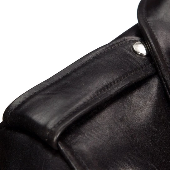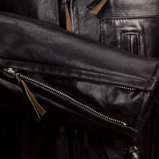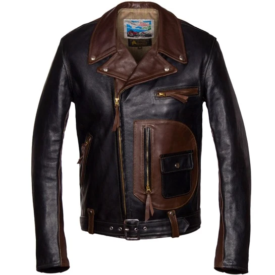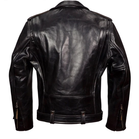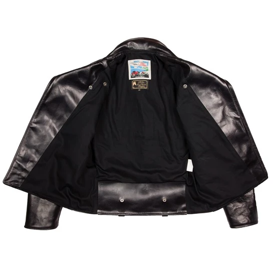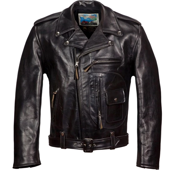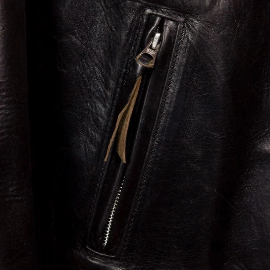 Our Type J-106 is a replica one of the most legendary designs of the era. First introduced by the Joseph Buegeleisen Company (Buco) in the 1950s, the Type J-106 quickly became one of the most ubiquitous motorcycle jacket designs. This heavy Horsehide Jacket features a handwarmer pocket and a small stud-down ticket pocket contained with ‘D-pocket’ styling, studded epaulettes and a full ‘action back’ for extra movement when riding. The sleeves have adjustable zip cuffs and the jacket is fastened by a cross zip. Waist adjustment is by an attached belt.