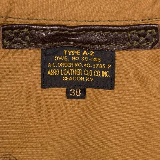 Our A-2 is based on a very rare original example from our archives and currently on display in our showroom. Our research since we acquired this original 40-3785-P has unearthed only two other known surviving jackets. This contract represents an interesting transition between the complex 1938 Aero A-2 and the much more common 1942 jacket. Gone is the complicated zip arrangement and extra top stitching unique to the 1938 Aero, but the jacket still retains its high collar stand and offset collar. Our jacket replicates every detail including a perfect replica of the original zipper, a Japanese made period style Talon alloy zipper on herringbone cotton tape, which is fitted as standard. The 40-3785-P has lost a little of the body taper associated with the 1938 jacket, but still has the slim shoulder and sleeve. This makes the 40-3785-P neater fitting than the 1942 contract though not as neat as the 1938.