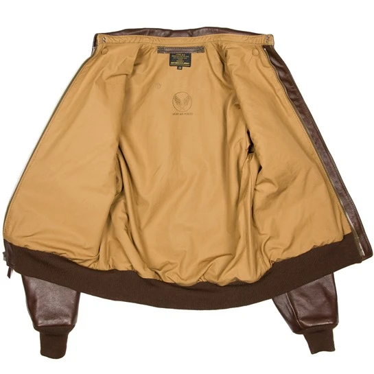 The AC1756 has one of the slimmest and most flattering cut of all the A-2 contracts, features such as the tapered body, high cut armholes, slim arms, narrow shoulders and the complicated stand collar design all have more in common with the 1930s jackets than the later wartime made A2s, the rounded collar of this contract is particularly stylish.
